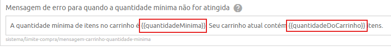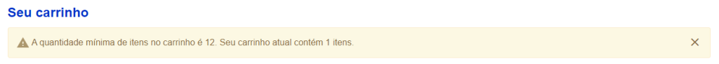 A funcionalidade quantidade mínima de itens no carrinho permite definir um número mínimo de itens para a compra poder ser finalizada.